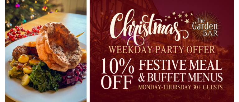 If you’re looking for a traditional venue to enjoy a fantastic Festive Meal or Christmas Party with friends, family and colleagues, then you’ve come to the right place. The Garden Bar has everything you need including seasonal cocktails, mulled drinks, festive buffets and