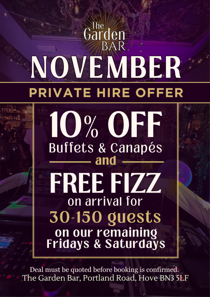 A deposit is required to secure your booking which can be used towards food or drink costs on the day.