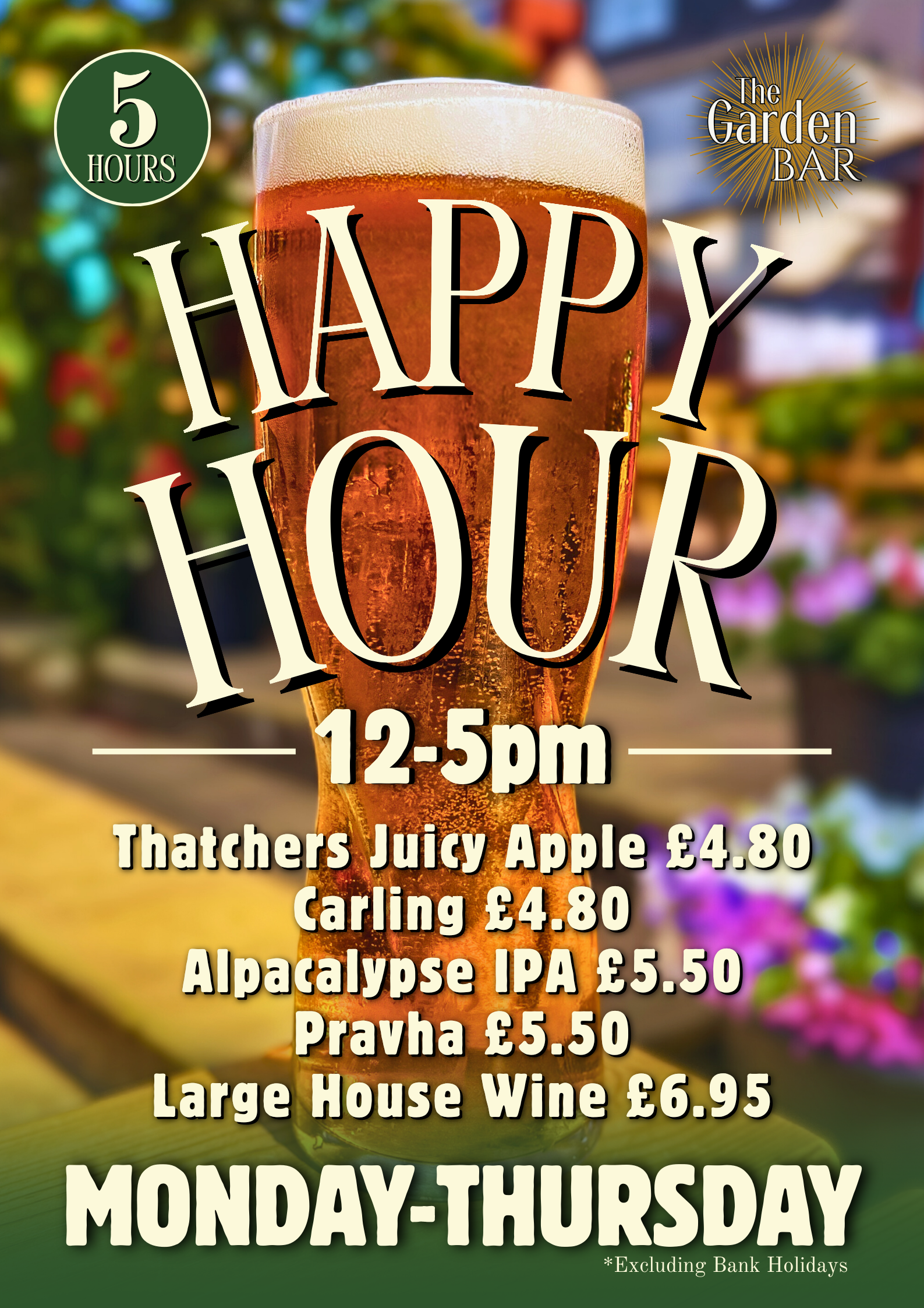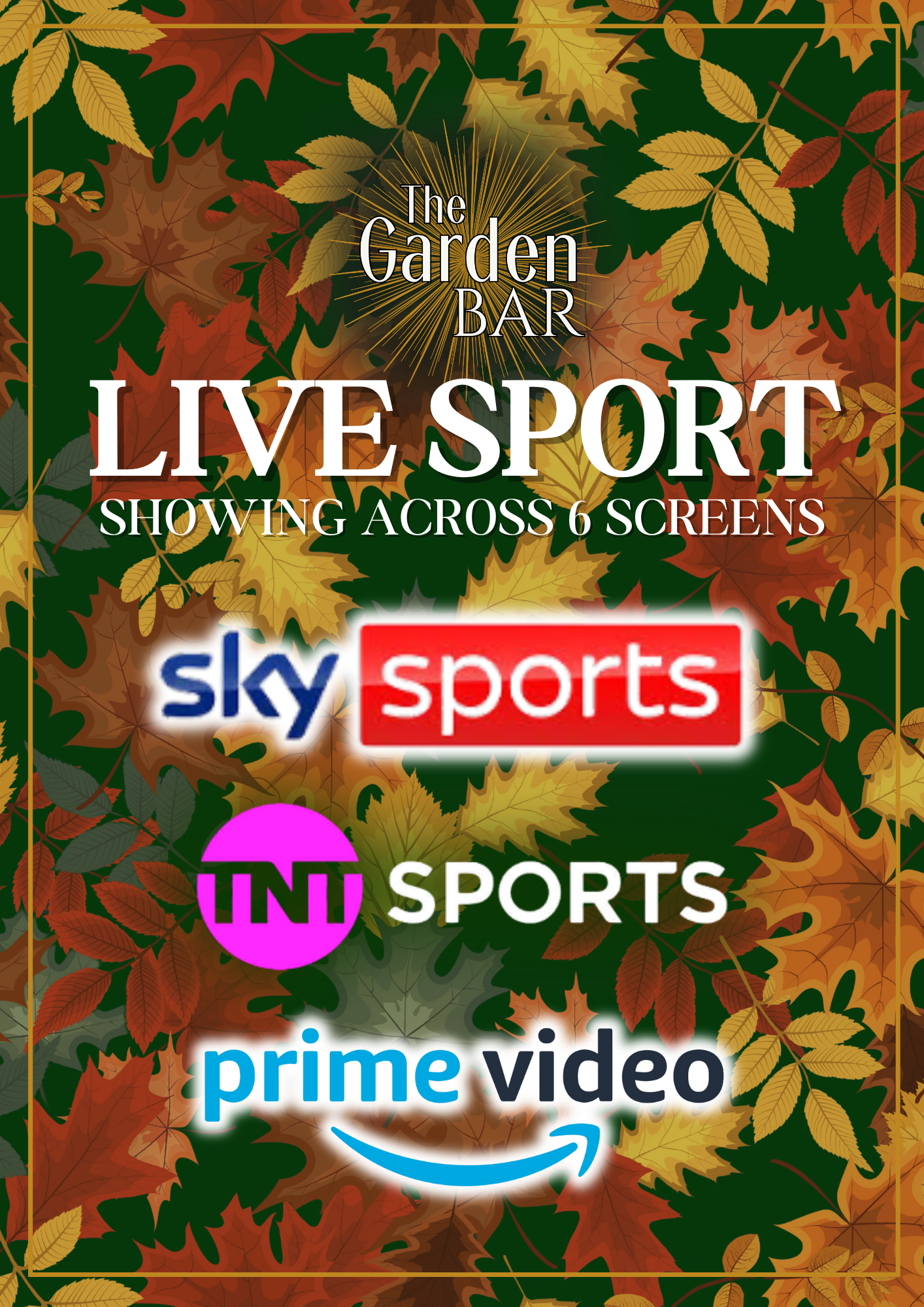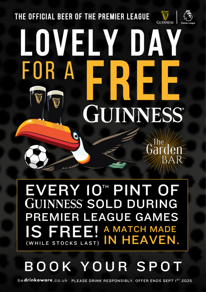 There’s always something good going on at The Garden Bar! Showing mens and womens sport including Football, Rugby, Darts, F1, Cricket, Golf, Boxing & more across 6 screens on Sky Sports, TNT Sport & Prime Video.